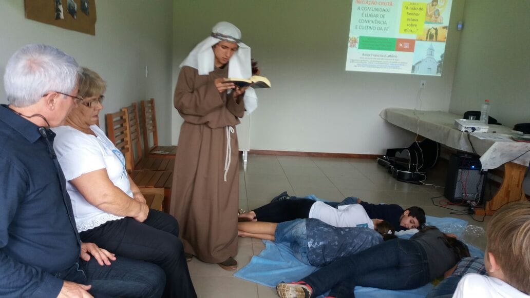 O Professor Ainor Francisco Lotério esteve realizando uma palestra na Comunidade Santo Antônio, pertencente a Paróquia Divino Espírito Santo, no município de Camboriú, SC. A palestra foi dedicada aos pais e catequizados das turmas de crisma e iniciação da comunidade. O tema ministrado foi A comunidade é Lugar de Convivência e Cultivo da Fé.